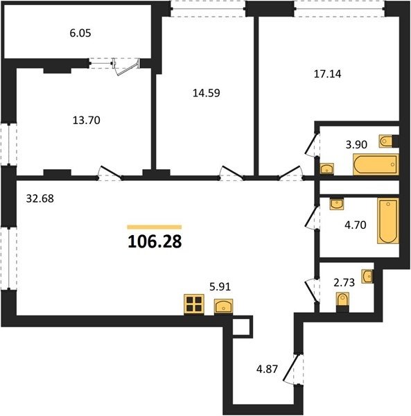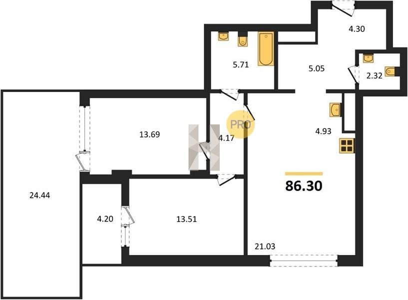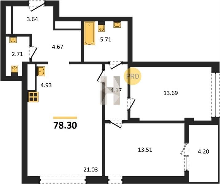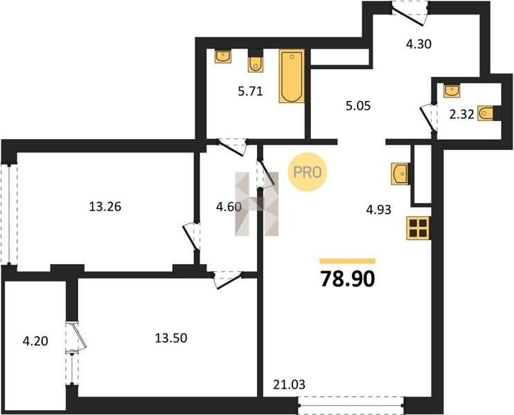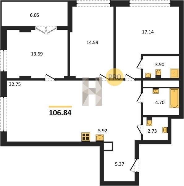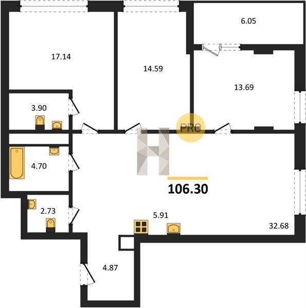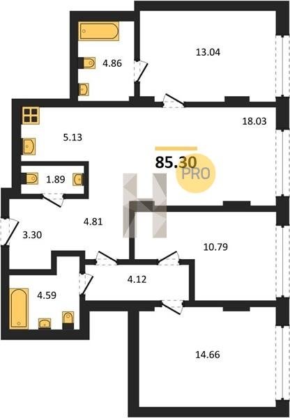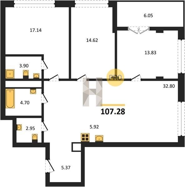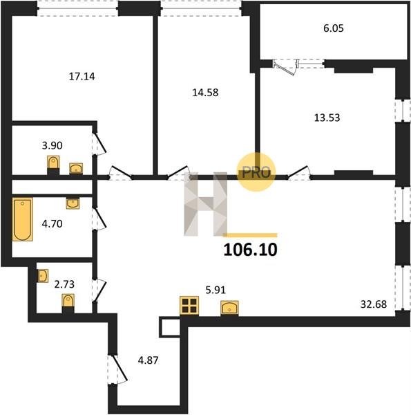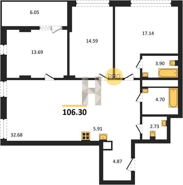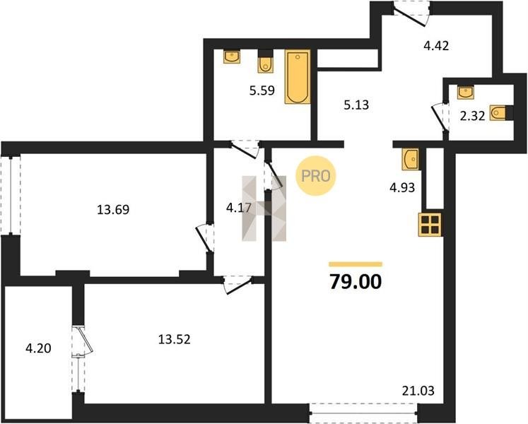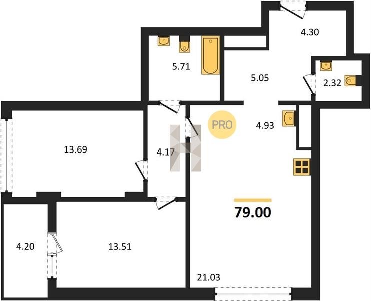 Сдан 3 комнаты от 87.23 м2 от 11,6 до 12,2 млн. руб