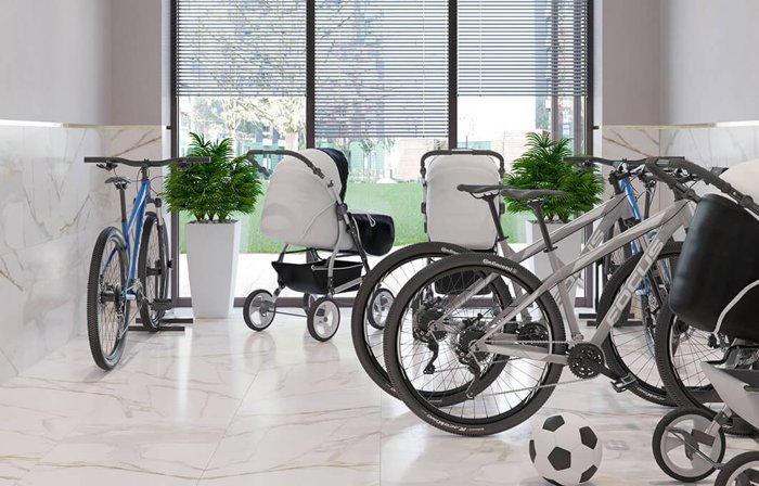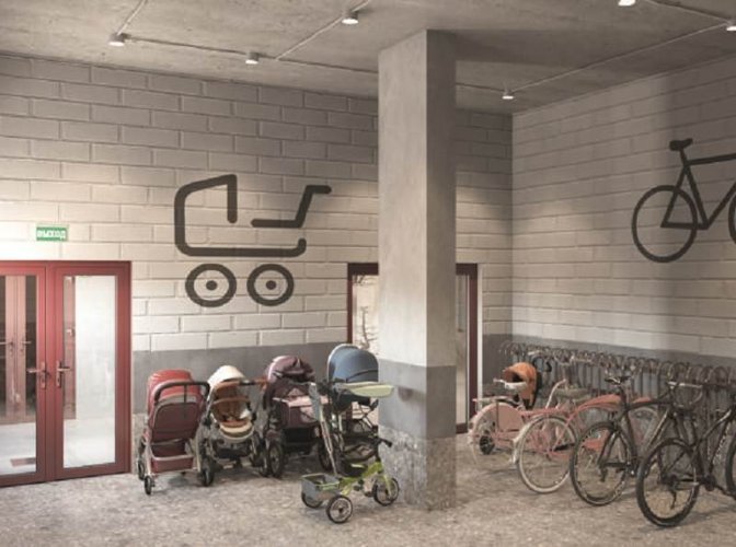В подъездах предусмотрены специальные места, где вы можете оставить коляску, велосипед и она не будет мешать соседям.