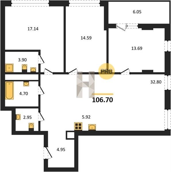 В жилом комплексе представлено более 10 видов планировок, некоторые из них, предусматривают большие панорамные окна.