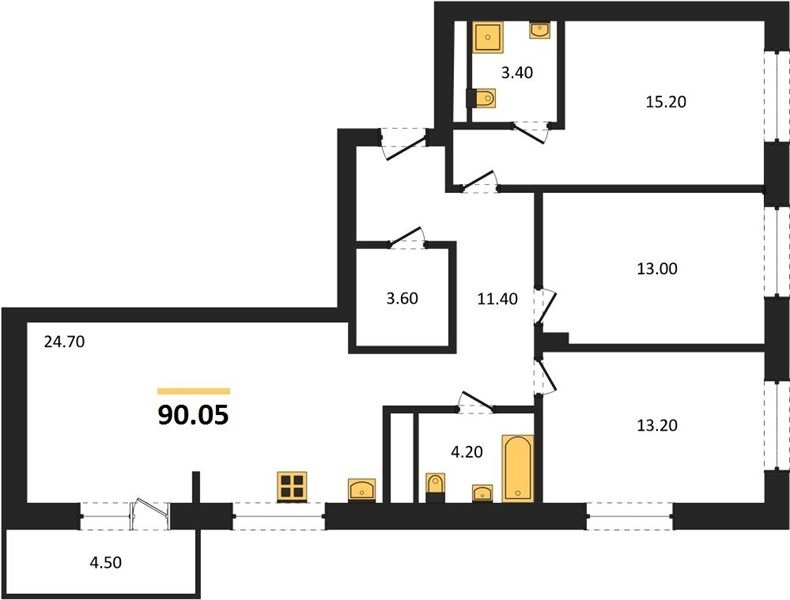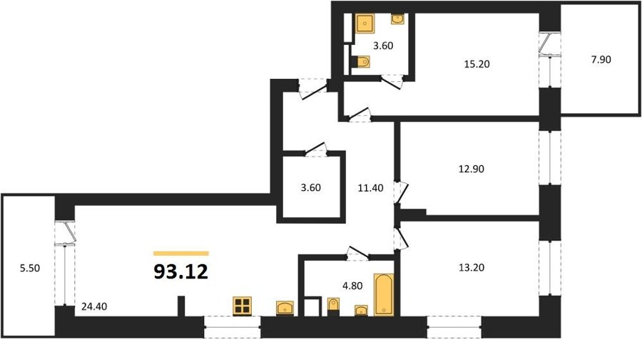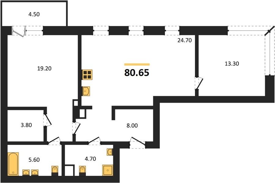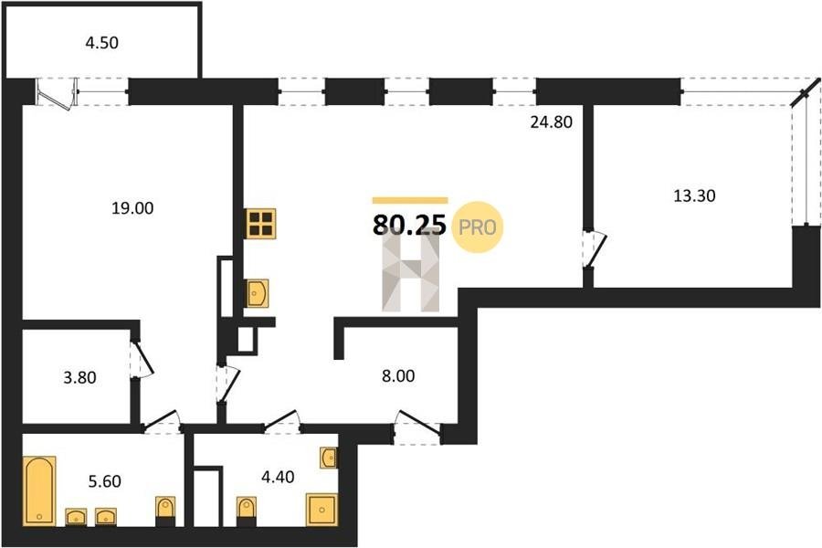 Продуманная эргономика включает мастер-спальни, два санузла, кухни-столовые с выходом на балкон и функциональные ниши.
