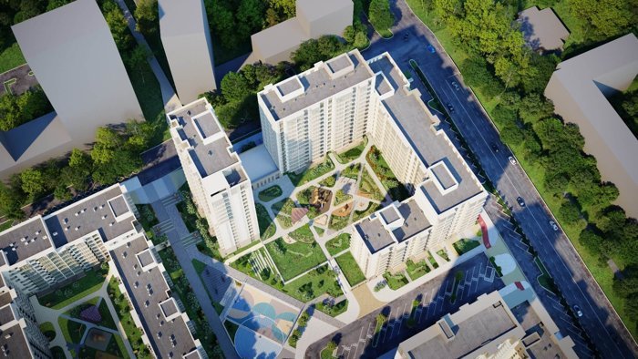 Квартал состоит из четырех монолитных домов комфорт-класса высотой от 6 до 18 этажей