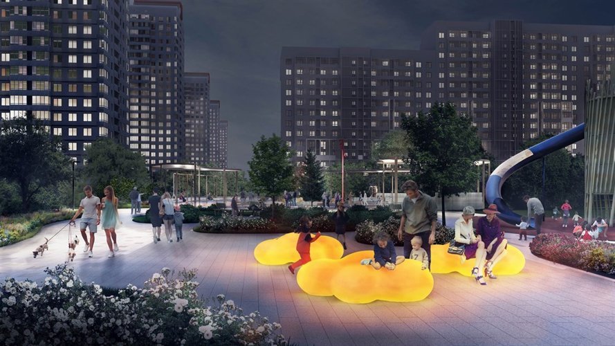 Стильные фасады с выразительными архитектурными акцентами формируют запоминающийся облик и подчеркивают статусность комплекса.