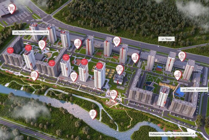 Это место, где деловая активность центра встречается с тишиной соснового бора и живописной набережной. В пешей доступности — вся инфраструктура мегаполиса: от бизнес-центров до гастрономических локаций, при этом ваш дом окружен зелеными зонами и будущим эко-променадом вдоль реки.