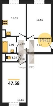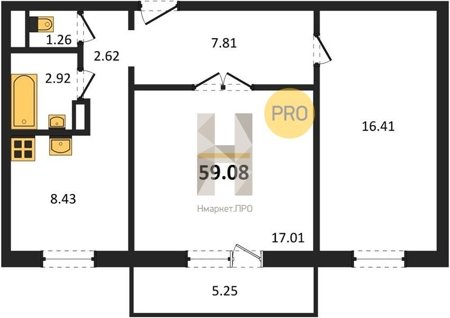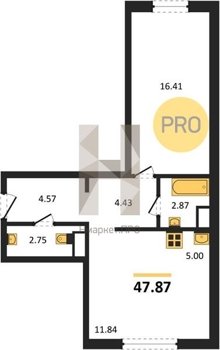 Площадь от 26.96 м2