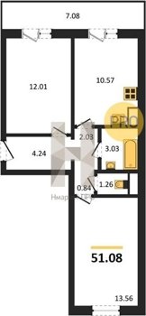 Площадь от 50.80 м2