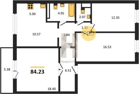 Площадь от 84.23 м2